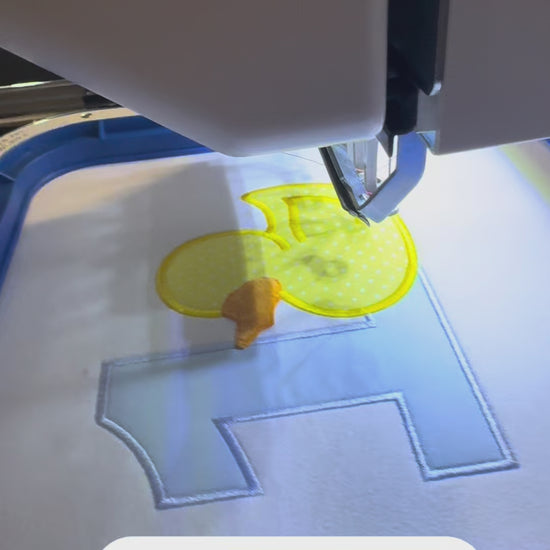 - 🐣 Dulce aplique de patito de lunares con un clásico número azul bebé