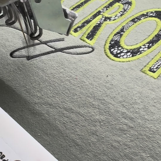 Esta camiseta bordada de calidad boutique es un recordatorio audaz de tu resiliencia y fe, con la frase "Más fuerte que la tormenta" y un bordado de aplique de encaje único que añade textura, elegancia y significado a cada puntada.