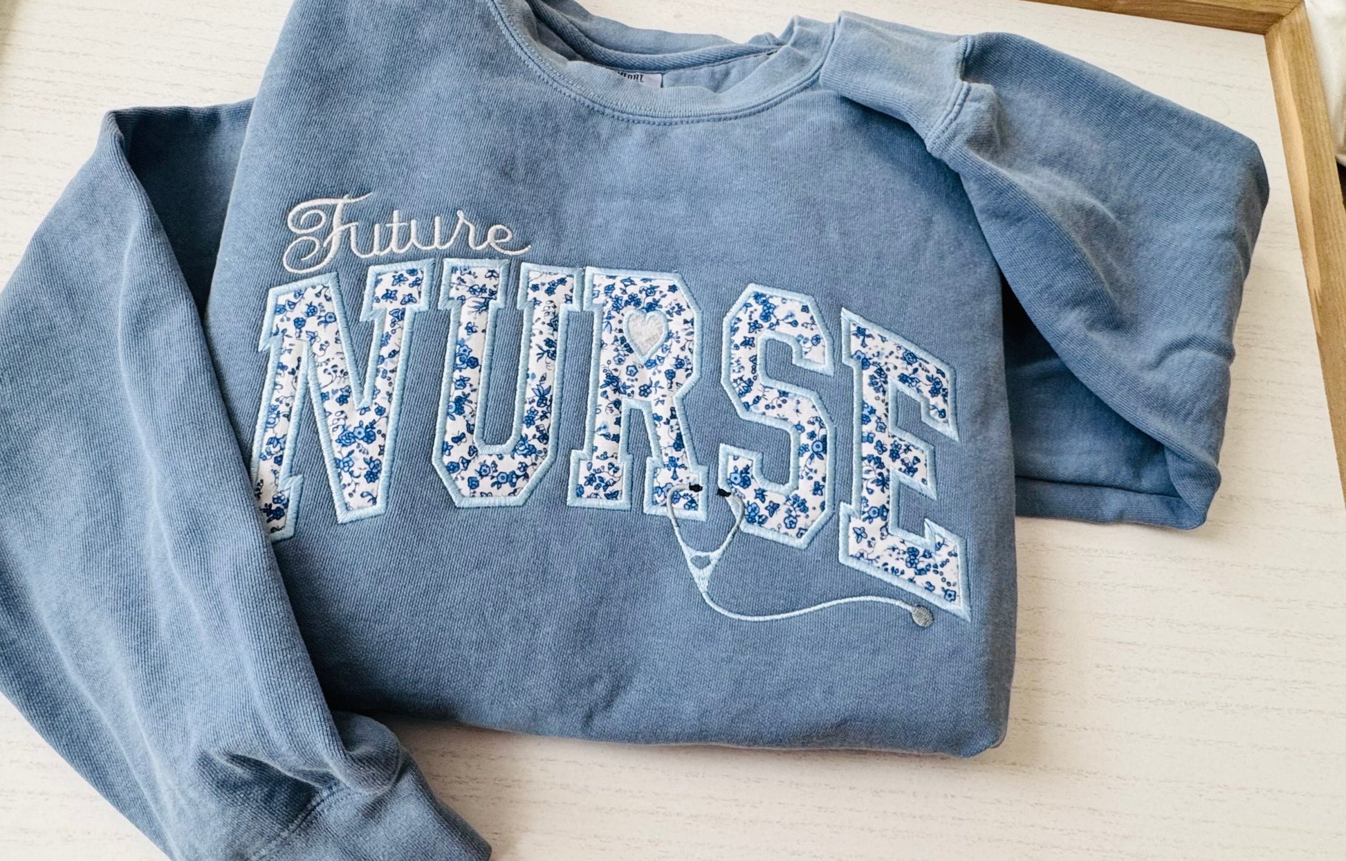 Future Nurse Comfort Colors Sweatshirt | Nursing Student Gift | Embroidered Applique Varsity Nurse Crewneck | Pre Nursing Graduation Gift
