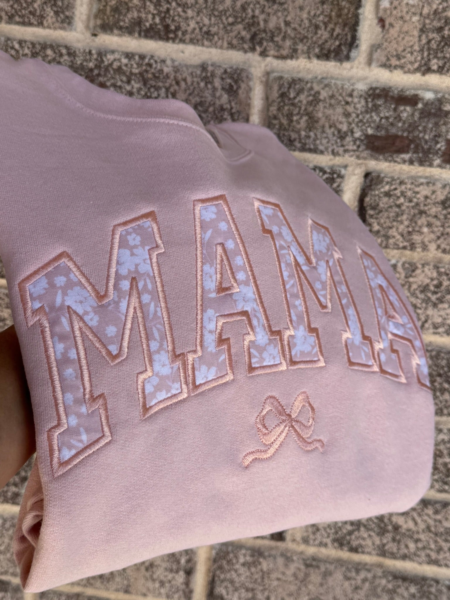 Personalized Mama Embroidered Sweatshirt – Custom Name Sleeve Floral Appliqué